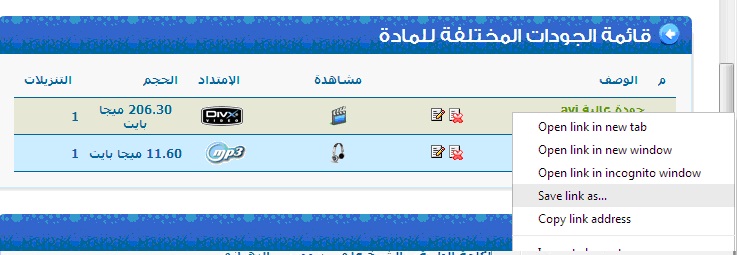 ان كنت تستخدم متصفح فايرفوكس اختر امر Save Link As