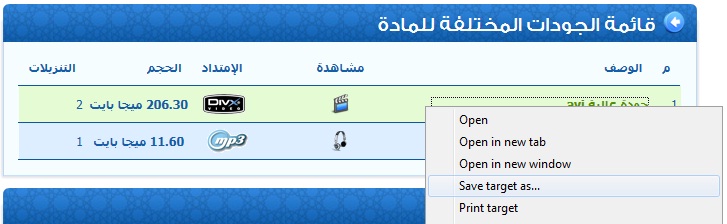 ان كنت تستخدم متصفح فايرفوكس اختر امر Save Link As